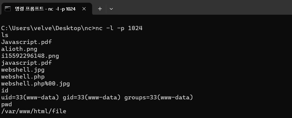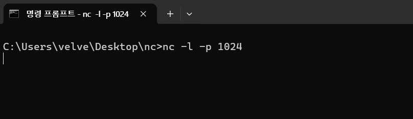 공격자 서버에서 netcat 도구를 활용해 1024번 포트를 리스닝으로 열어 놓는다.