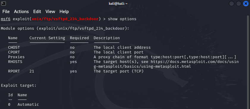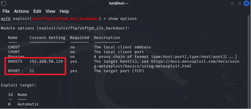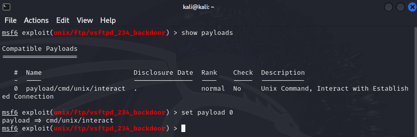 use exploit/unix/ftp/vsftpd_234_backdoor // 취약점 모듈 이름을 이용해 장착 가능