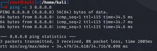 ping -c 3 8.8.8.8 // -c [요청수]