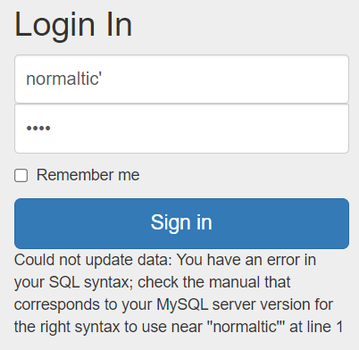 normaltic' and extractvalue('1', (concat(0x3A, (select 'test')))) and '1' = '1