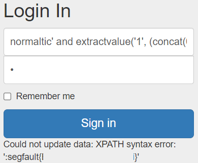normaltic' and extractvalue('1', ':test') and '1' = '1
